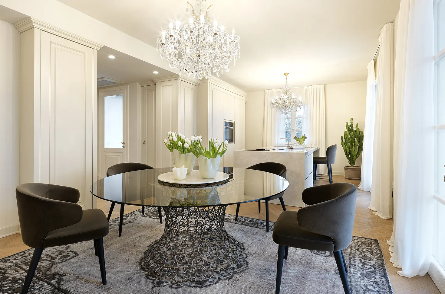 A villa built from scratch, designed and built by FarArreda to the client's specifications in every detail. In this home, classic and contemporary styles come together, creating a romantic atmosphere in which nivea tones are juxtaposed with darker details that vary in gradations of warm tones.