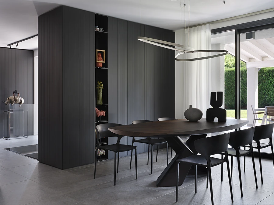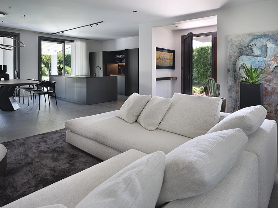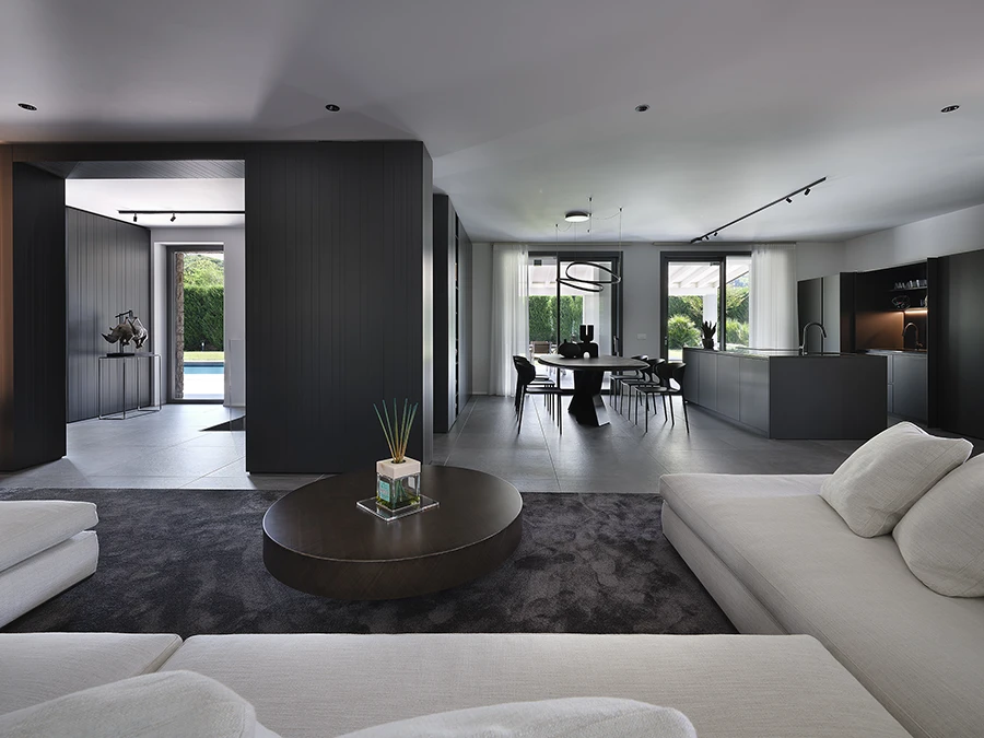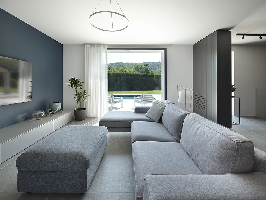 Questa villa con giardino sorge tra le colline della Franciacorta, si distingue per la cura dei materiali utilizzati, interamente selezionati da Far arredamenti.